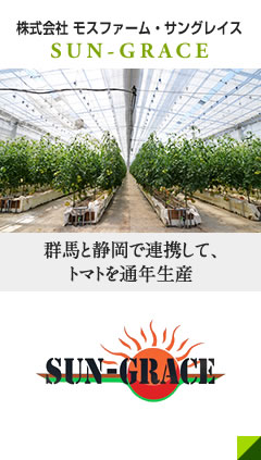 グループ内でトマトの生産に特化しているのが、(株)サングレイスです。(株)モスフードサービスと野菜くらぶを主な出資者として設立されたこの会社は、群馬と静岡の農場でモスバーガーチェーン向けのトマトを生産しています。